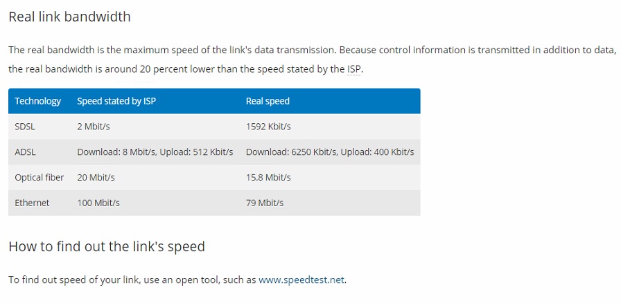 Подсказка Керио нам сообщает, что реальная скорость будет на 20% меньше заявленной в договоре.