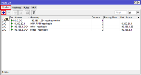 - Dst. Адрес: должен быть «0.0.0.0/0«