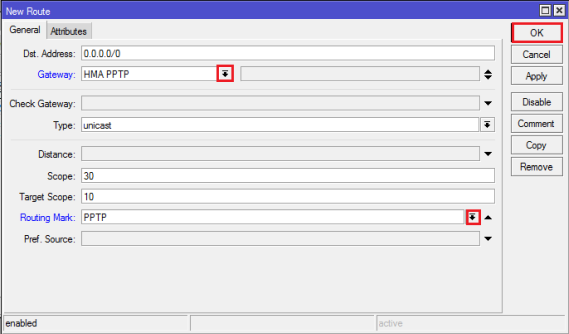 - Маршрутная метка: выберите метку маршрутизации, которую вы создали ранее. (например, «PPTP»)