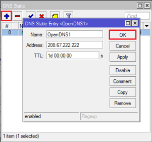 В поле «Имя» введите «OpenDNS1»; «Адрес»: «208.67.222.222» и нажмите «ОК».