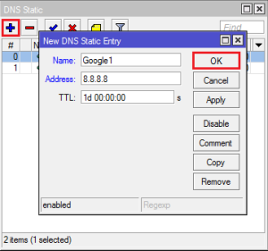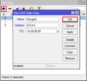 И в последний раз, нажмите на и в поле «Имя» введите: «Google2», а в поле «Адрес» введите: «8.8.4.4» и снова нажмите «ОК».