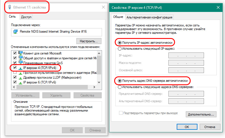 - Установите маркер в положение «Получить IP-адрес автоматически» и «Получить адрес DNS-сервера автоматически». Нажмите кнопку «Ок» для принятия изменений.