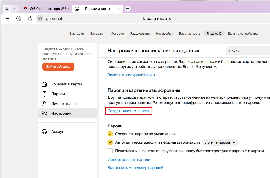 ПРИМЕЧАНИЕ! Чтобы менеджер паролей работал корректно и на всех устройствах – авторизуйтесь под вашей учетной записью Яндекс.
