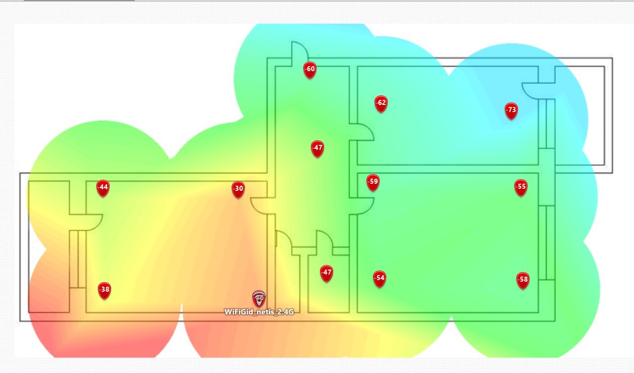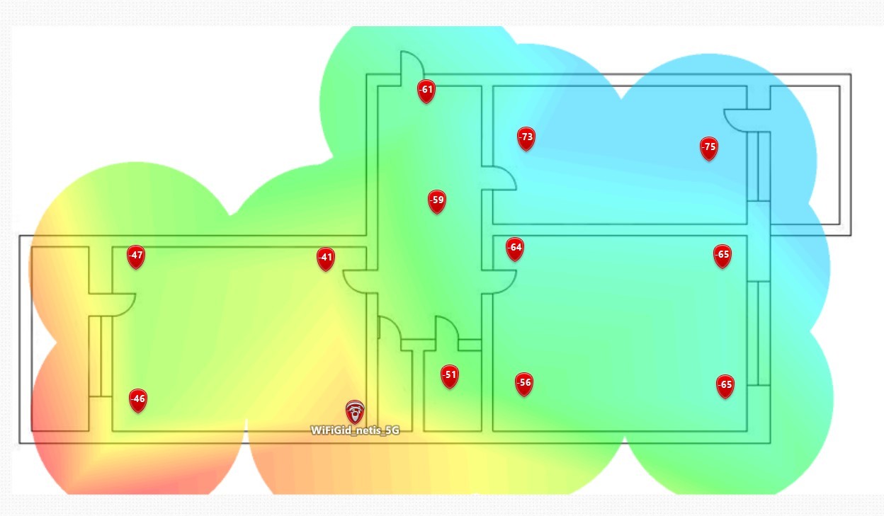Простой пользователь обычно старается избегать использования репитеров и тем более mesh-систем, поэтому в поисках «самого мощного роутера» останавливается на одном роутере. Традиционный тест на покрытие одним роутером netis N5 стандартной «двушки» с железобетонными стенами.