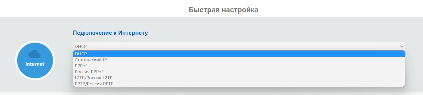 Для настройки ПРОВОДНОГО интернета снова не нужно никуда ходить – все уже расположено на главной странице, просто выбираем нужный для себя вариант.