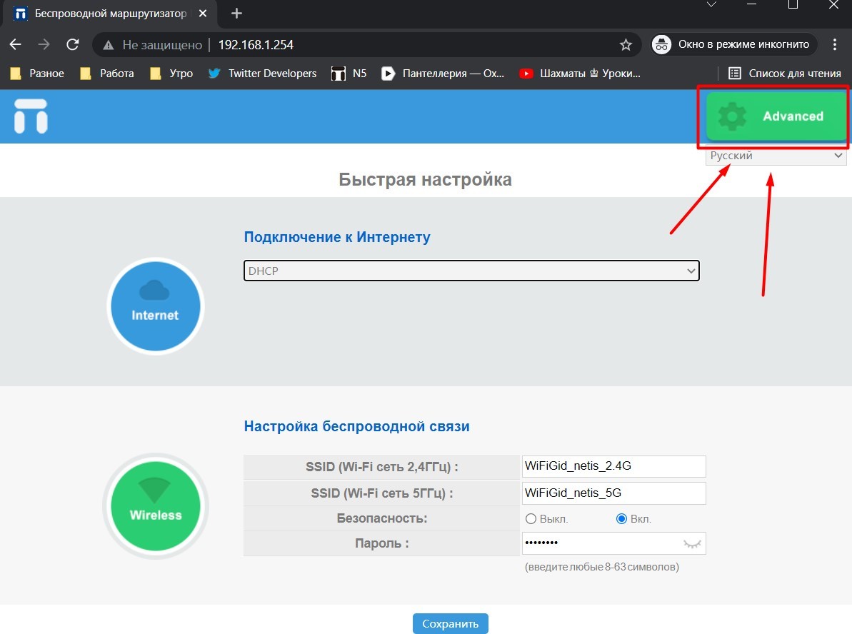 - Страница входа – http://netis.cc или 192.168.1.254. Просто открываем любую из этих ссылок в браузере. Если не открылась одна, обязательно откроется другая.