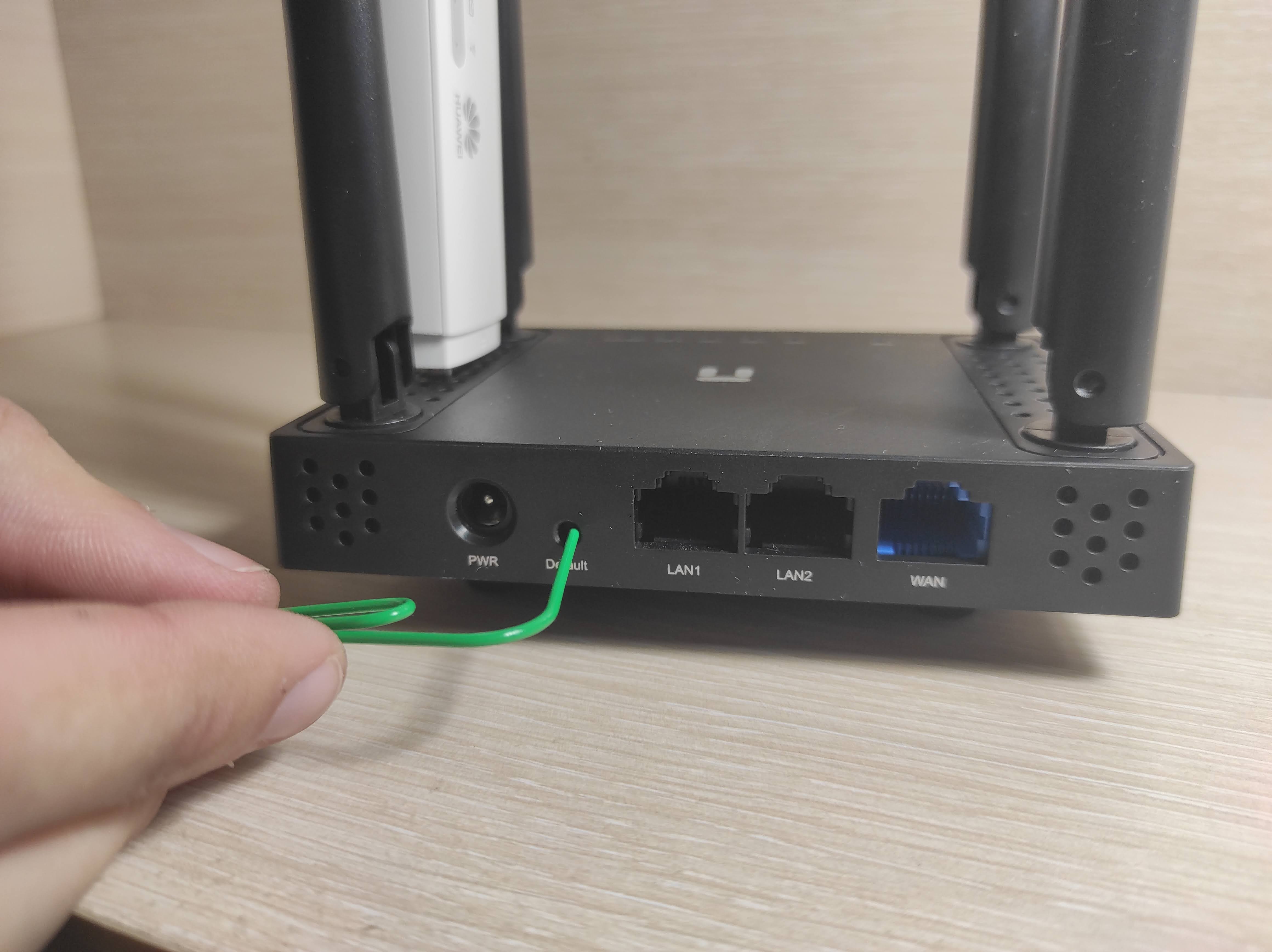 - Ищем на задней стороне отверстие Default. Там расположена кнопка (спрятана, чтобы случайно дети или коты не сбрасывали настройки без вашего ведома). Берем что-нибудь тонкое – игла, скрепка, шило, карандаш или ручка – и аккуратно нажимаем на эту кнопку. То, что вы нажали, поймете, сильно давить не нужно.