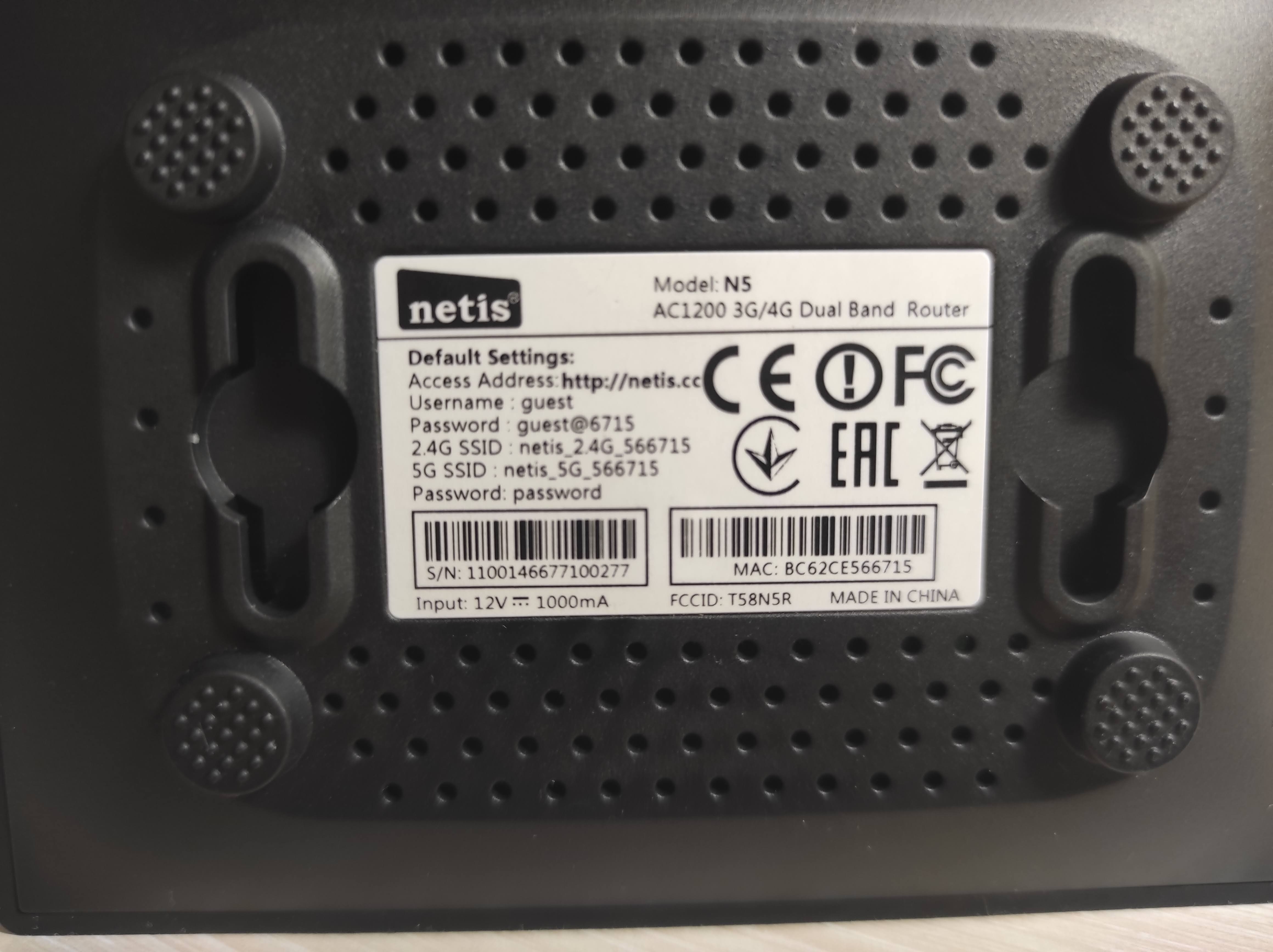 - Точка 2,4 ГГц – netis4G_XXXXXX. Где XXXXXX последние 6 цифр MAC-адреса вашего роутера.