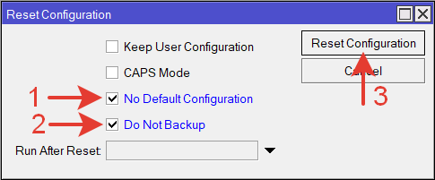 Do Not Backup — не делать резервную копию перед сбросом конфигурации.