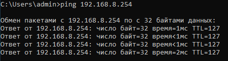 Проверяем ping между компьютерами в разных сетях.
