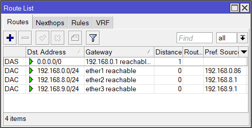 Посмотрим что в маршрутах. IP >> Routes.
