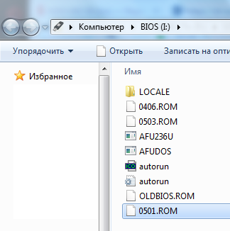 Извлекаем из архива файлы скаченного BIOS и все что было в архиве, копируем в корень созданной загрузочной флэшки.