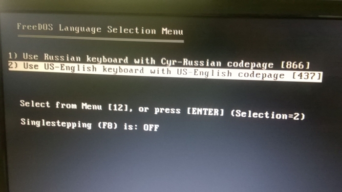Попав в DOS выбираем английскую раскладку клавиатуры.