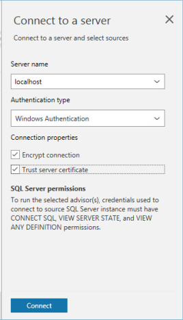 Как только мы нажимаем Далее, мы попадаем на экран, где нам нужно подключиться к серверу, который мы решили обновить. Поскольку мы обновляем сервер, к которому мы подключены, мы выберем localhost в качестве сервера и обязательно проверим « Сертификат доверенного сервера », чтобы не было неприятных ошибок, связанных с тем, что имя не является доверенным в домене и т.д.