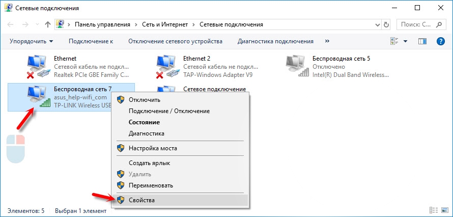 - На значке LAN-подключения щёлкните правой кнопкой мыши и выберите «Свойства».