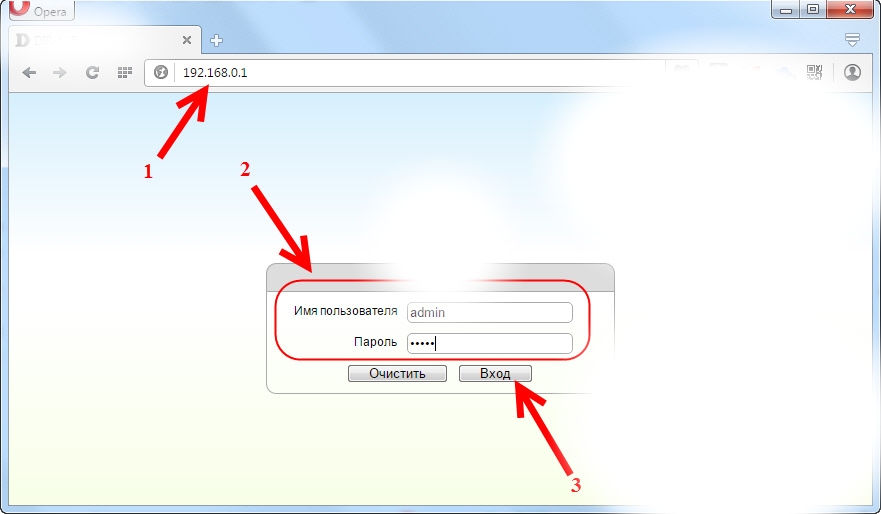 Итак, роутер подключён к ПК с помощью кабеля LAN и включён. Для продолжения настроек требуется авторизация в веб-интерфейсе роутера: