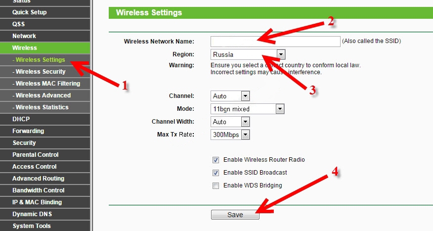 Прежде чем выходить в интернет, потребуется настройка Wi-Fi — в роутере TL-MR3040 один порт LAN, поэтому при отсутствии беспроводной сети полноценно работать не получится: необходим ещё один канал, через который ПК или гаджет получит доступ к нужным ресурсам интернета. Этот канал — точка доступа Wi-Fi. Её настройка сводится к следующему: