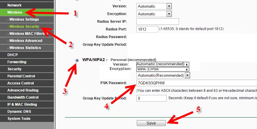 - Выберите тип шифрования WPA-2 и установите автоопределение его версии (чтобы точка Wi-Fi и подключаемые к ней устройства не конфликтовали).