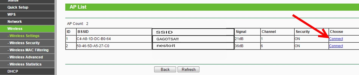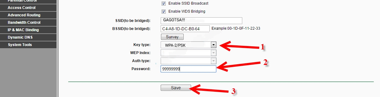 - Убедитесь, что MAC-адрес ретранслируемого роутера указан верно — в случае автовыбора частоты на последнем устройство MR3040 будет подключаться по нему.