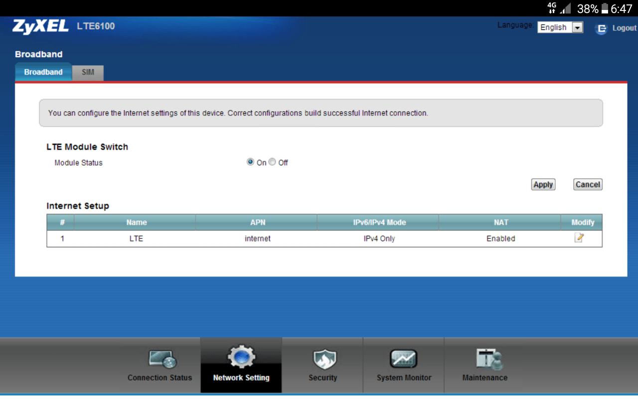 Роутер ZyXEL LTE6101 подключён к другому маршрутизатору