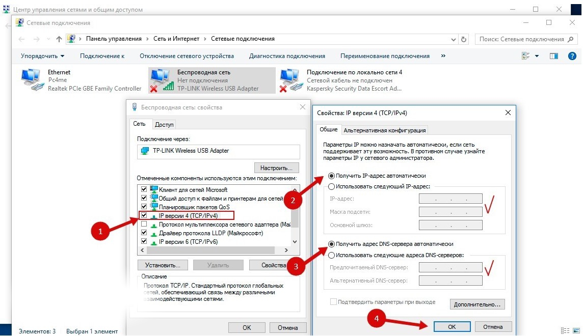 5. Убедитесь, что включены функции автоматического получения основного IP и DNS-адресов. Если указаны конкретные адреса — сотрите их.