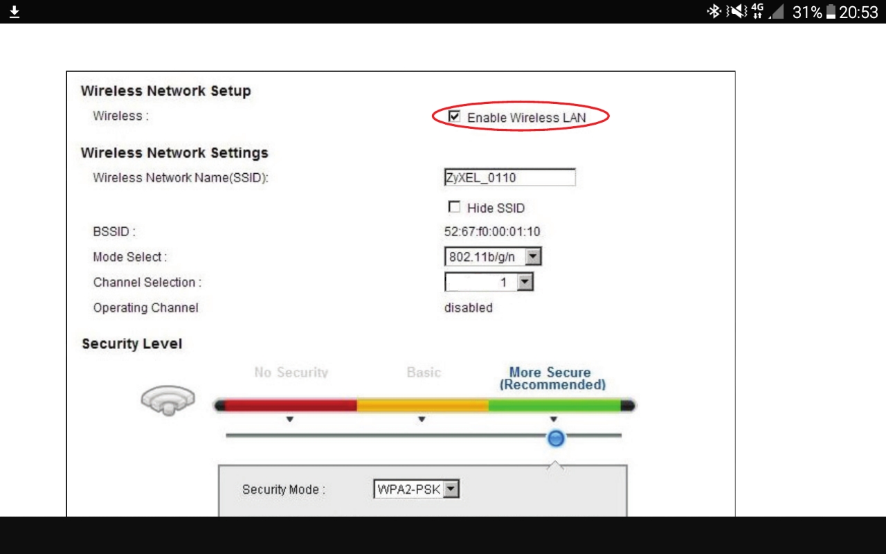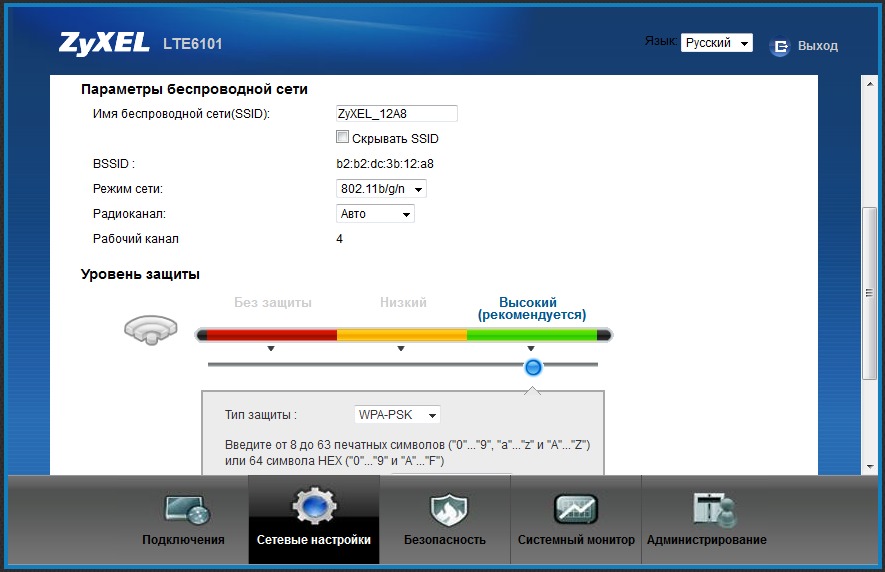 Смартфоны и планшеты не подключаются по кабелю — им нужна сеть Wi-Fi. Настройка беспроводной сети ZyXEL LTE6101 заключается в следующем: