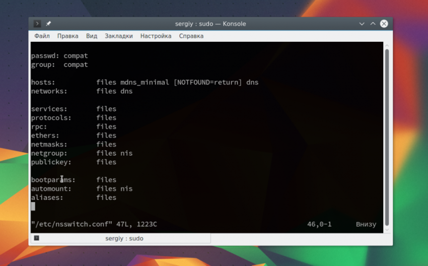 Этот файл задает настройки порядка разрешения имен в системе для всех программ, написанных на Си или С++. Например, нужно сначала просматривать локальную сеть и систему, или сразу же отправлять запрос к DNS.
