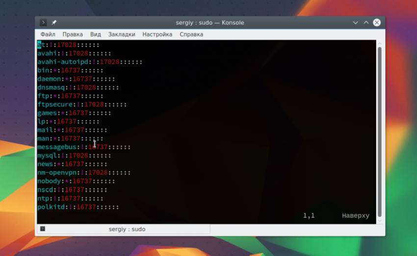 Файл содержит список всех зарегистрированных в системе пользователей, а также дополнительные настройки для них, например, оболочку, дату смены пароля и дату отключения аккаунта, кроме самого пароля. Напрямую файл лучше не редактировать, а использовать утилиту для управления пользователями adduser или deluser.