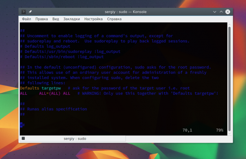 /etc/sudoers — это файл настройки прав доступа к утилите sudo. Эта утилита позволяет выполнять команды от имени других пользователей, в том числе от имени суперпользователя. Но использовать ее могут только те пользователи, которые прописаны в этом файле.