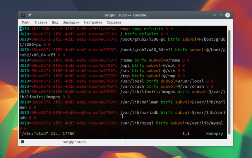 Наверное, все уже знают файл /etc/fstab. Здесь выполняется настройка монтирования файловых систем во время загрузки. В современных системах он читается systemd и все записи на ходу транслируются в юнит-файлы, с помощью которых уже выполняется монтирование. Смотрите также: автоматическое монтирование fstab.
