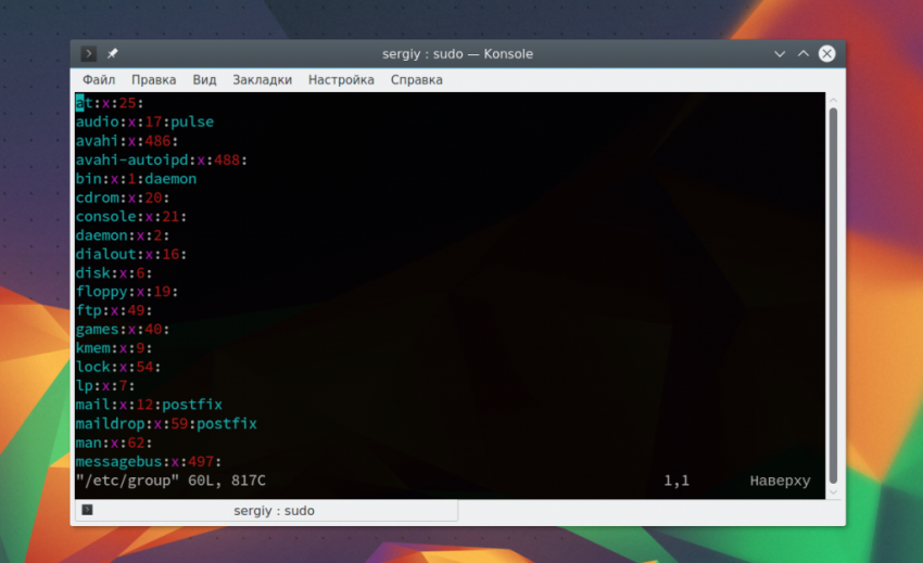 В этом файле хранятся все группы пользователей, которые есть в системе. С помощью него вы можете посмотреть список групп, их идентификаторы или добавить новые. Но добавлять группы с помощью редактирования файла не принято, для этого есть утилита usermod.