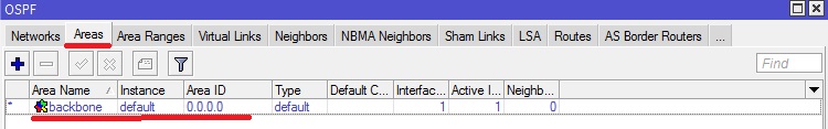 Переходим к конфигурации  области. Область backbone уже создана и дополнительной настройки не требуется.
