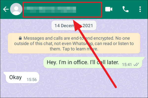 Запустите WhatsApp на своем устройстве и откройте чат, для которого вы хотите разрешить исчезновение сообщений. Это может быть личный или групповой чат. Коснитесь имени человека/группы.