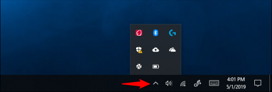 Если вы видите значок батареи здесь (область, которую Microsoft называет «областью переполнения области уведомлений»), просто перетащите ее обратно в область уведомлений на панели задач.