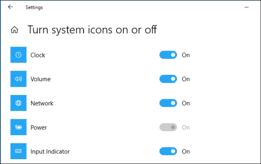 Отсюда также можно включать и выключать другие системные значки , включая Часы, Громкость, Сеть, Индикатор ввода, Местоположение, Центр действий, Сенсорная клавиатура, Рабочая область чернил Windows и Сенсорная панель.