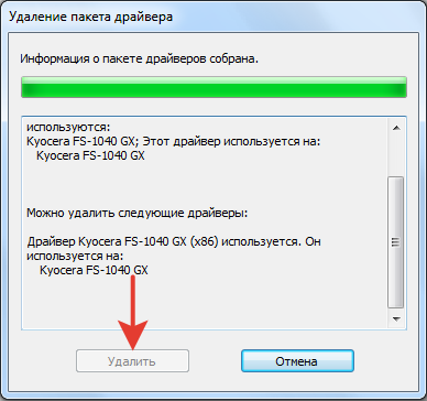 После выполнения названных действий кнопка станет активной. Жмем на неё и драйвер удалится.