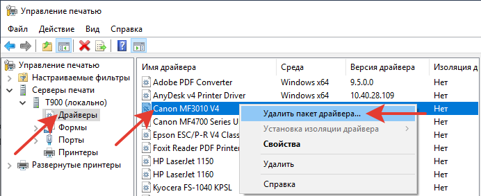 Пробуем удалить принтер из оснастки «Управление печатью».