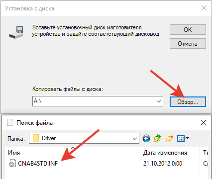 Указываем путь к папке с драйвером и устанавливаем его, нажав кнопку «Далее».