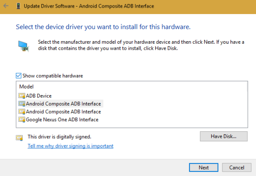 Возможно, вам придется искать папку, если вы не видите ее там. Как только вы выберете правильное местоположение, нажмите Далее и Windows установит драйверы. Отныне, когда вы подключаете ваше устройство Android с включенным ADB, драйверы Koush будут загружаться вместо тех, которые не работали.