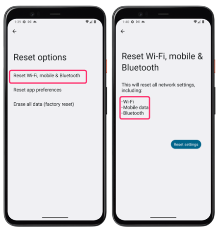 Шаг 2. Нажмите «Сбросить параметры», а затем нажмите «Сбросить Wi-Fi, мобильный телефон и Bluetooth» (или «Сбросить настройки сети»).