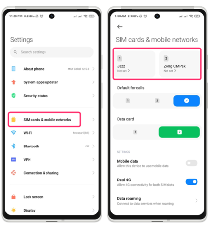 Шаг 1. Перейдите в «Настройки», а затем нажмите «SIM-карты и мобильные сети»: