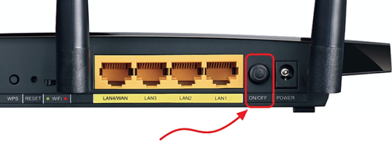 Роутер перезапускается с помощью кнопки Power на задней панели. Но также можно выключить и включить адаптер питания.