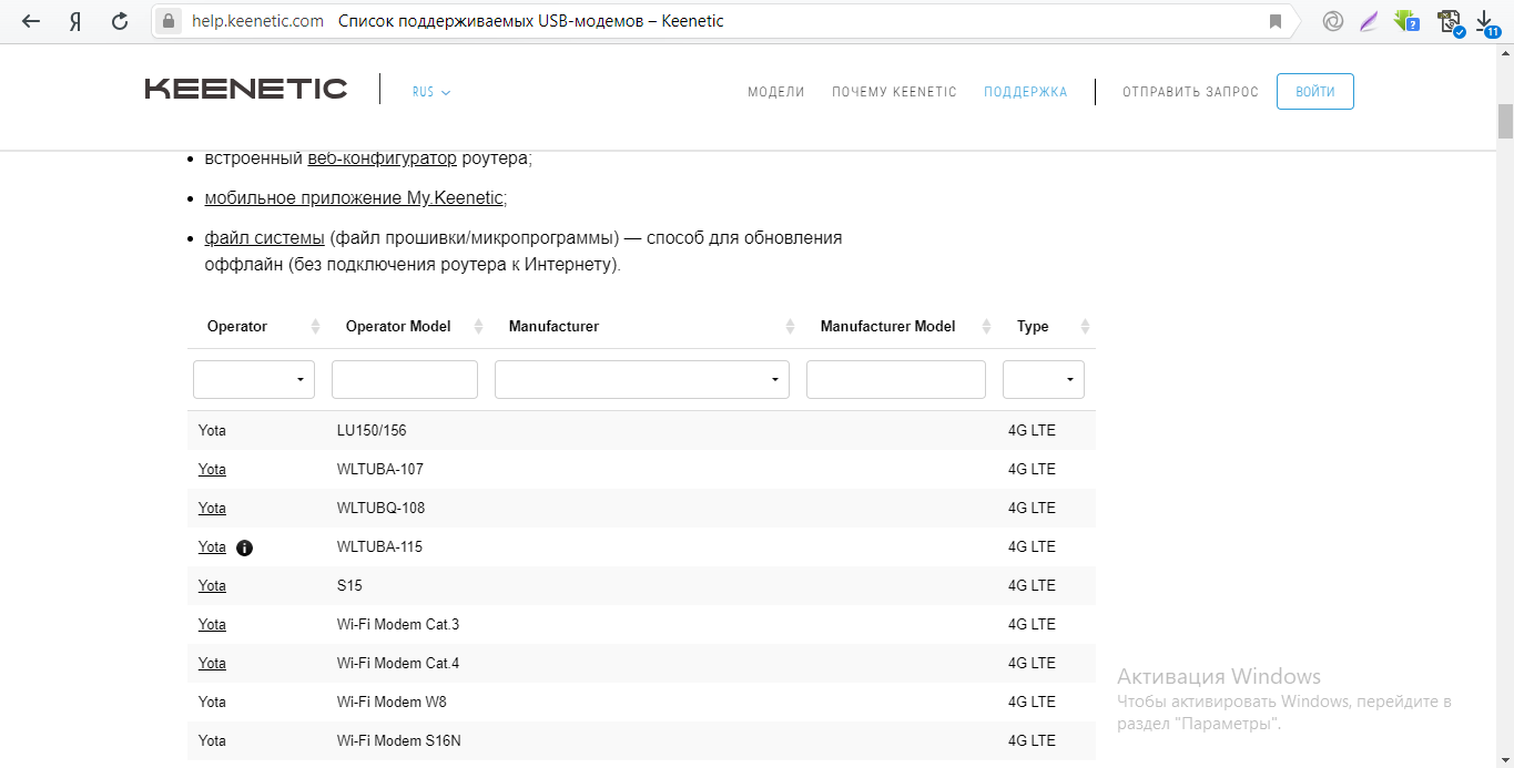 - Keenetic. Для этих роутеров найдёте полный список на этой странице официального сайта.
