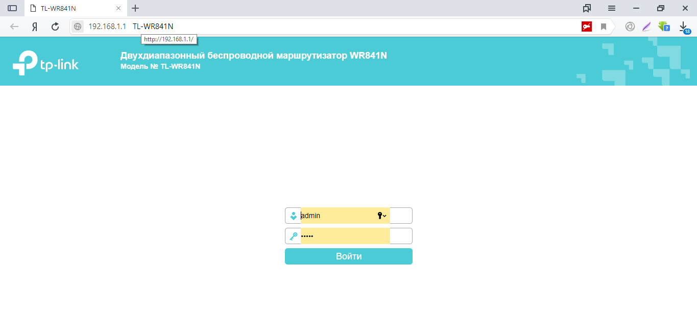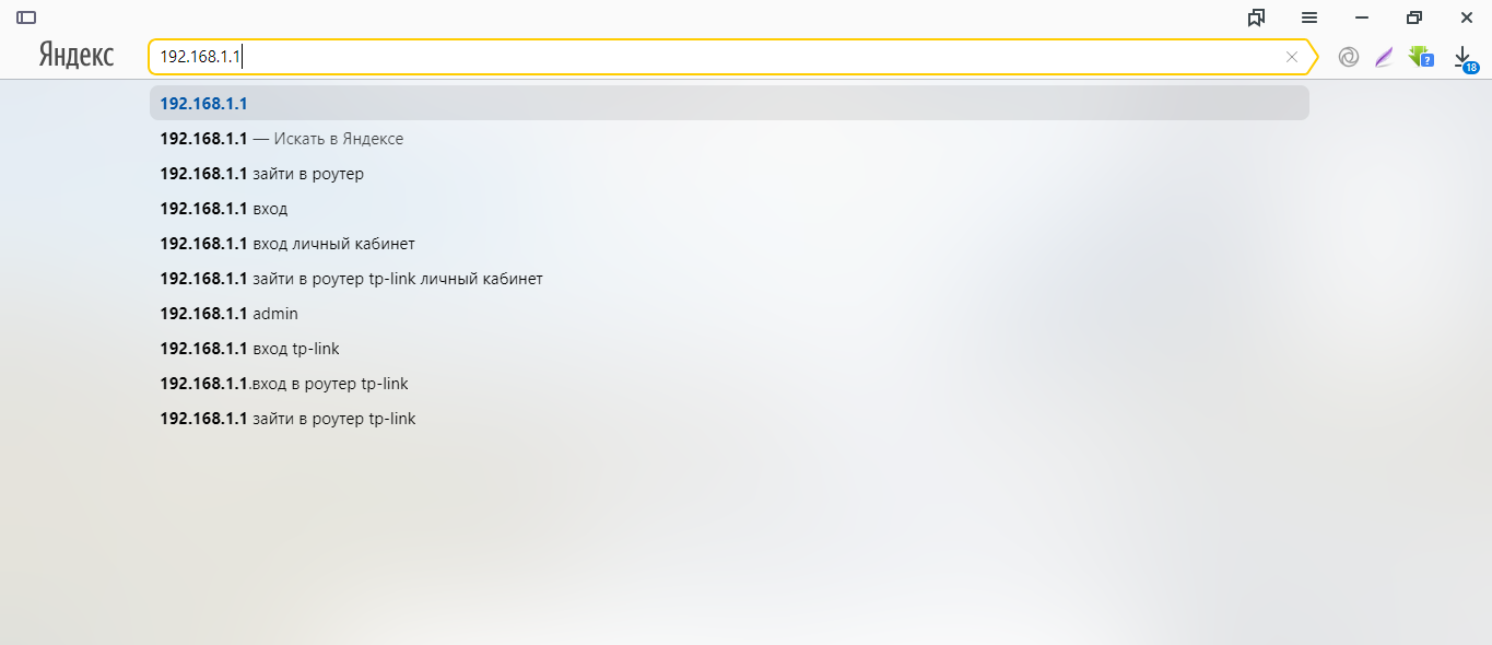 - Теперь откройте браузер и в строке навигации наберите 192.168.1.1 или 192.168.0.1. Щёлкните по «Энтер». Если не подходит ни один, посмотрите на этикетку роутера — там должен быть отмечен правильный адрес.