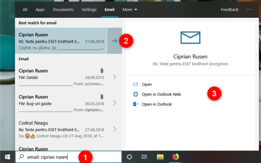 6. Используйте Поиск, чтобы найти электронную почту в Windows 10