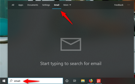 Windows 10 знает, как работать с приложением «Почта и календарь» от Microsoft, и позволяет вам использовать Поиск для поиска писем, отправленных или полученных вами. Чтобы сделать это прямо с рабочего стола, откройте «Поиск» и нажмите или коснитесь элемента «Электронная почта» или введите адрес электронной почты: в поле поиска, а затем искомое условие.