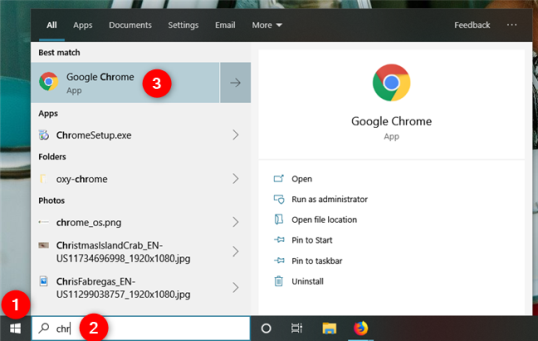 Одна из лучших особенностей поиска в Windows 10 заключается в том, что он помогает быстро открывать приложения, используя только клавиатуру. Вместо того, чтобы нажимать или нажимать на поле поиска на панели задач, нажмите клавишу Windows на клавиатуре. Затем начните вводить название приложения, которое вы хотите открыть. Когда он появится в результатах поиска, нажмите Enter и, вуаля, приложение запустится. Возьмем, к примеру, Google Chrome: нажмите клавишу с логотипом Windows, введите chr, а затем нажмите Enter.