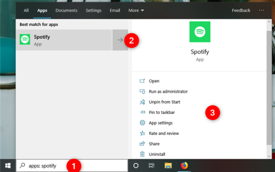 При поиске приложений на панели предварительного просмотра справа отображаются дополнительные действия, которые вы, возможно, захотите сделать. Вы можете получить быстрые ссылки на «Открыть», «Запуск от имени администратора», «Прикрепить» или « Открепить» приложение к «Пуску» и на панели задач, изменить настройки приложения, Оценить и просмотреть, Поделиться, Удалить и т.д. Быстрые ссылки могут отличаться в зависимости от приложения в зависимости от параметров, которые к нему применяются. Например, если результатом поиска является приложение для настольного компьютера, вы не можете оценить и просмотреть его в Магазине Майкрософт, поскольку оно недоступно в Магазине.