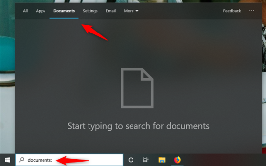 Чтобы отфильтровать поиск с самого начала, вы можете нажать или нажать кнопку «Документы» на главном экране поиска или ввести документы: если вы предпочитаете печатать, нажимая. Затем начните писать название документа, который вы ищете.
