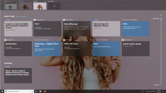 Сочетания клавиш для виртуальных рабочих столов в Windows 10